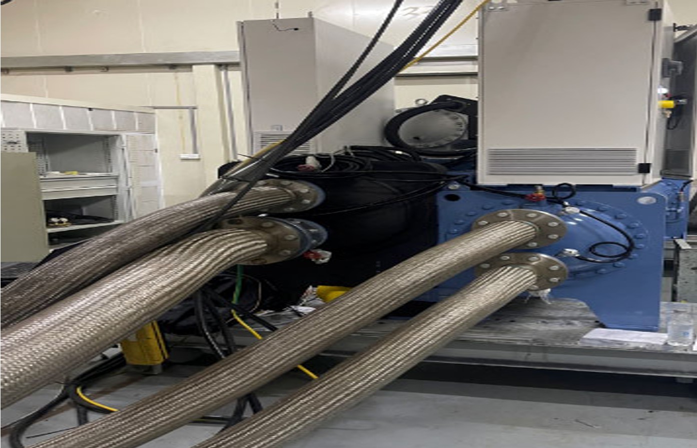 According to the motor parameters of the magnetic motor, Yolico chooses the liquid & air-cooling frequency inverter with rated 300A and 160kW. Besides, Yolico installs a sine wave filter between the frequency inverter and motor.