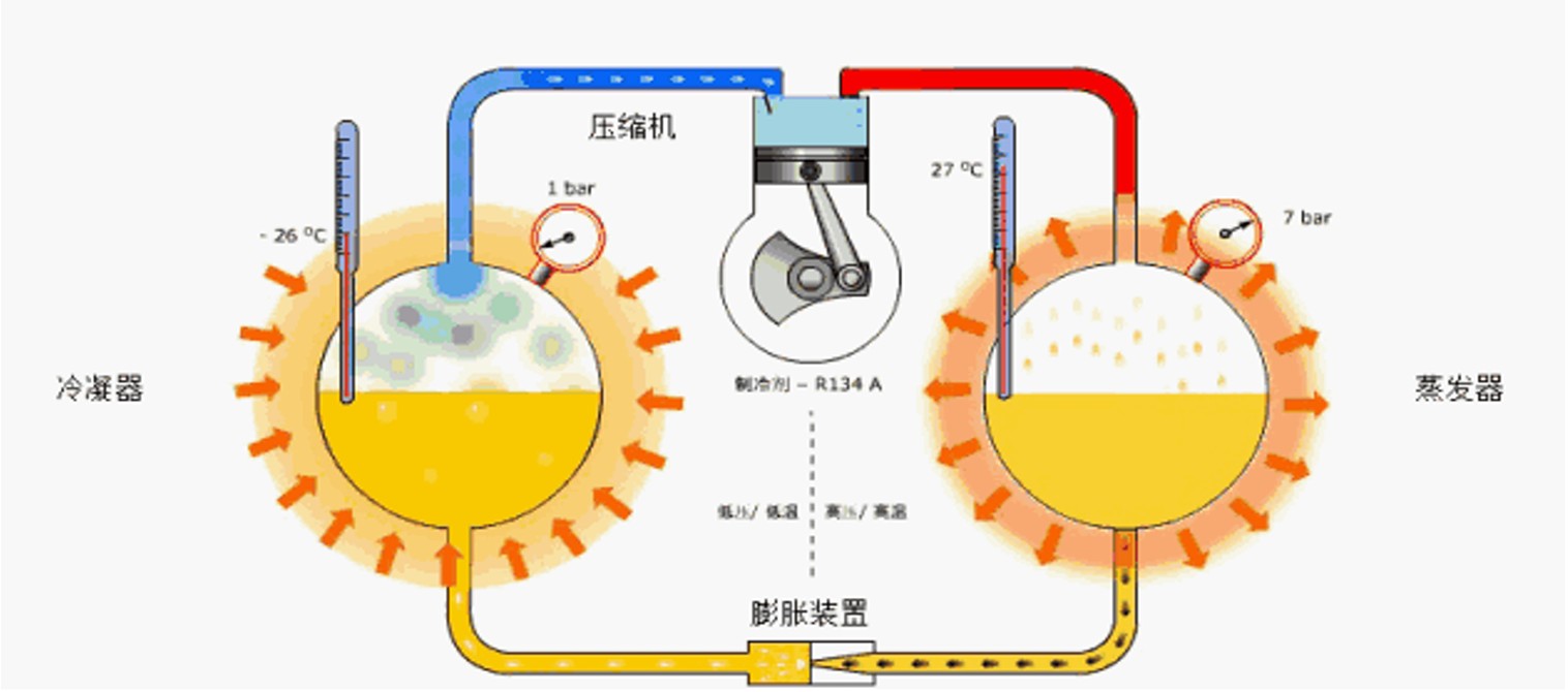 The compressor of the evaporative and cooling AIO (all - in – one) unit inhales the low-temperature and low-pressure refrigerant gas from the evaporator, compresses it into high-temperature and high-pressure gas, and then discharges it into the condenser to exchange heat with chilled water, turning it into low-temperature and high-pressure refrigerant liquid.