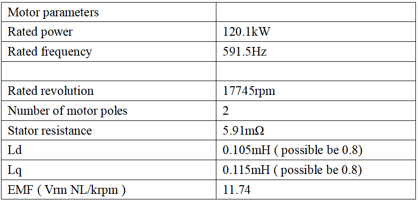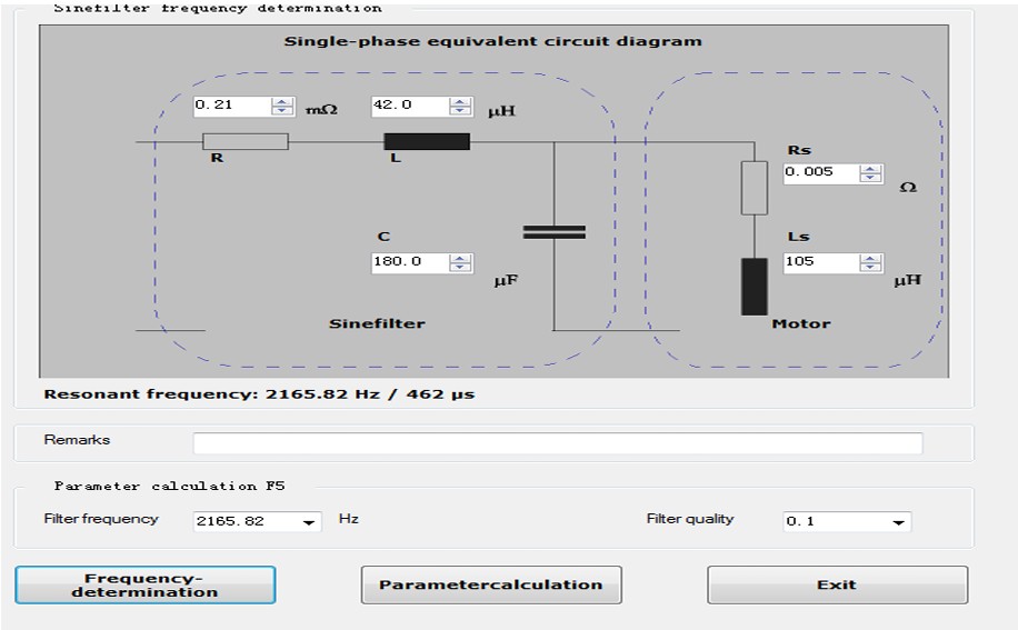 The rated current of the motor is 250A. it’s with a sine wave filter; the filter’s parameters need to be confirmed.