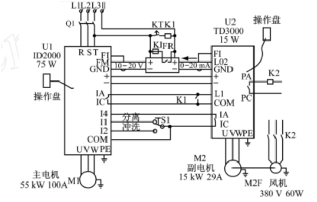 2. On site, a 55 kW main frequency converter and a 15 kW auxiliary frequency inverter are used in combination.